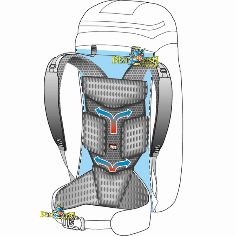 Спина: благодаря системе Air Convector Tech Back является мягкой, но хорошо вентилируемой. Глубокие вентиляционные каналы позволяют циркулировать воздуху между спиной и рюкзаком. Валики с мягкой пенополиуретановой подкладкой обшиты дышащей сетчатой тканью.