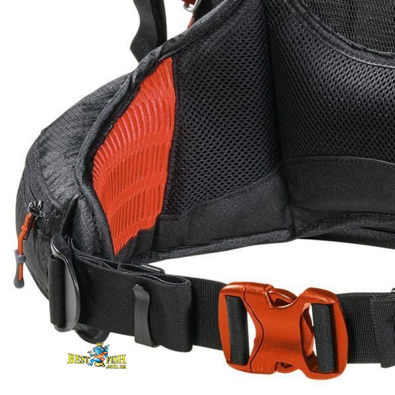 - Плечові лямки: регульовані по висоті, анатомічної форми з м'якою підкладкою з EVA-піни, обшиті дихаючої сітчастої тканиною, мають петлі для фіксації патрубка гідратаціонной системи.