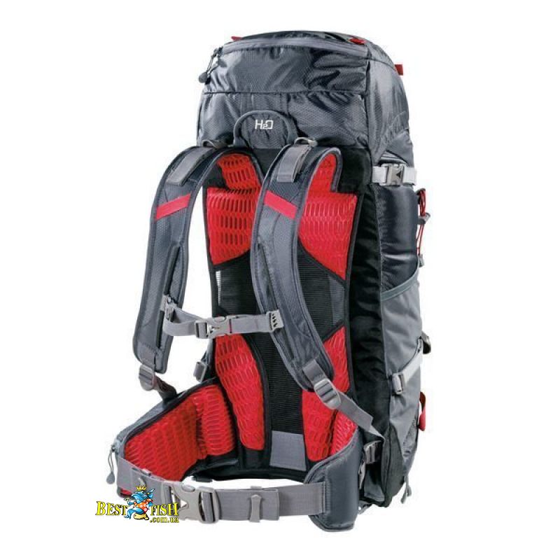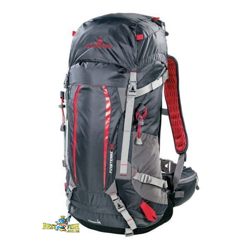 Серия Finisterre является самой функциональной среди хайкинговых рюкзаков Ferrino. Не смотря на то, что эта коллекция позиционируется, как рюкзаки для похода выходного дня, все они вполне подходят и для более длительных походов в горы. Боковые, фронтальные стяжки и дополнительные стропы позволяют разместить на рюкзаке все необходимое от каремата и палатки до сноуборда и лыж. Рюкзак отлично садится по спине, благодаря несколько удлиненному формату и системе подвеса DNS. Данная система способствует правильному распределению нагрузки и обеспечивает самый высокий уровень вентиляции. Внутреннее пространство рюкзака разделено перегородкой со стяжным шнуром. Фронтальный доступ открывается очень широко, позволяя разместить в нижнем отделении трехсезонный спальник. Емкость фасадного кармана регулируется боковыми стяжками. Высокие боковые карманы свободно вмещают литровую бутылку с водой, хотя необходимый запас воды можно разместить в питьевой системе (опционально) под которую адаптирован рюкзак. Защитный чехол от дождя находится в потайном нижнем кармане. Карман на клапане разделен молнией на два отделения. Для самых необходимых мелочей имеется карман на набедренном поясе. На фасаде имеются крепления, предназначенные для треккинговых палок или ледорубов. Самые ответственные элементы конструкции выполнены из прочнейшего материала Hypalon®.