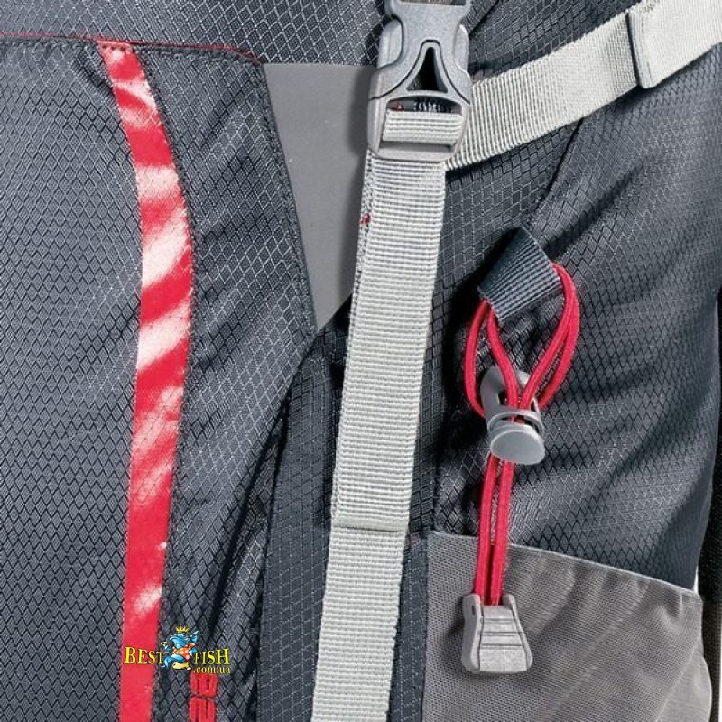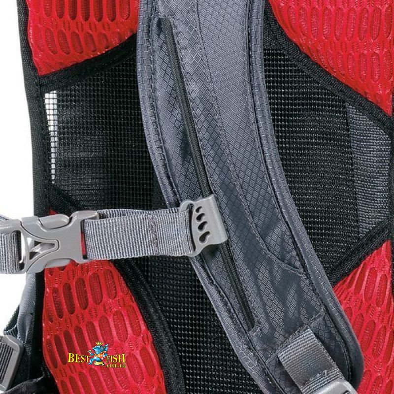 - Плечевые лямки: Регулируемые по высоте, анатомической формы с мягкой пенополиуретановой подкладкой, обшиты дышащей сетчатой тканью, с петлями для фиксации патрубка питьевой системы