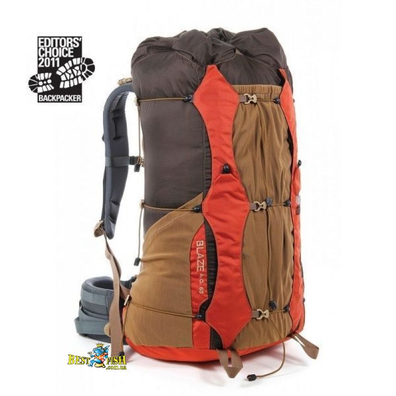 Компанія Granite Gear розробила спеціальну лінійку туристичних рюкзаків, що враховують особливості анатомії жіночого тіла. Дана модель має стегнах пояс спеціальної форми, що забезпечує додатковий комфорт в тривалих походах для дівчат. Головне достоїнство рюкзака Granite Gear Blaze AC 60/55 Ki Sh Tiger / Java - мінімальна вага. Однак, не дивлячись на те, що це практично спартанський рюкзак в своїй простоті, його конструкція забезпечує високу функціональність і адаптивність для кожного користувача. З метою зменшення ваги, рюкзак не має в базовій комплектації верхнього клапана, проте верхня горловина згортається і фіксується фастексами таким чином, щоб виключити намокання речей всередині при опадах. Найбільш компактних розмірів упакованого рюкзака можна домогтися за допомогою одинадцяти компресійних стяжок, розміщених з боків, на фасаді і зверху рюкзака. Вони ж дозволяють закріпити значну кількість додаткового спорядження зовні рюкзака. Три зовнішні кишені виконані з еластичної сітки, вони мають великий обсяг, і здатні вмістити навіть двомісну треккинговую намет. Granite Gear Blaze AC 60/55 Ki Sh Tiger / Java - рюкзак для тих, хто розуміє на скільки важливо легке і комфортне спорядження для складних і тривалих походів.