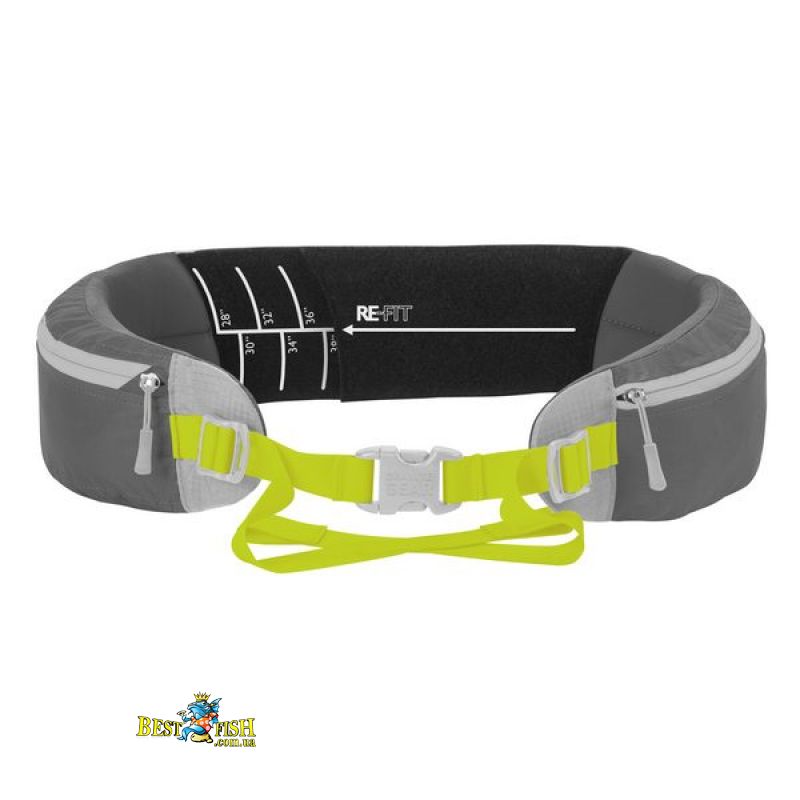 • RE-FIT Hip Belt - компания Granite Gear запатентовала специальную конструкцию полностью съемного набедренного пояса рюкзака с изменяемой длиной крыльев. Часто для правильного перераспределения веса с плеч на бедра недостаточно просто регулировки длины строп набедренного пояса. Именно крылья боковой поддержки должны быть четко на своем месте и обеспечить удобную посадку рюкзака на бедрах. В отличие от большинства других моделей, пояс данного рюкзака состоит из двух половин, фиксирующихся в необходимом положении широкой текстильной застежкой Velcro, таким образом изменяя общую длину пояса в широком диапазоне от 71 до 102 см. Также пояс является полностью съемным: таким образом можно уменьшить общий вес рюкзака, когда в поясе нет необходимости. Два поясных кармана позволят разместить все необходимые мелочи (складной нож, смартфон, навигатор, компактный туристический бинокль) которые всегда должны быть под рукой. Карманы закрываются замком на водозащищенной молнии. При необходимости пояс можно использовать, как отдельную поясную сумку для кратковременных радиальных выходов на разведку местности.