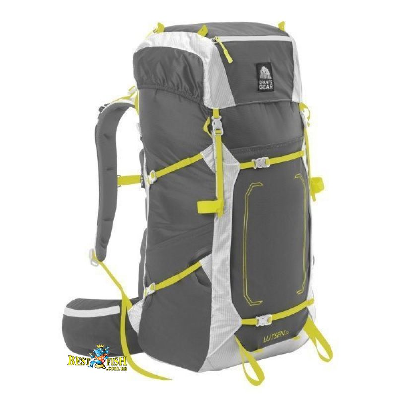 Когда необходим один универсальный рюкзак, расcчитанный как на транспортировку тяжелого снаряжения, так и на однодневные походы, ультралегкий, но при этом имеющий жесткий каркас, с идеальной посадкой для каждого пользователя, в поле зрения попадает Granite Gear Lutsen 55 L/XL Flint/Chromium/Neolime. Такие решения, как съемный набедренный пояс с регулировкой длины крыльев боковой поддержки, съемный верхний клапан, съемный каркас, регулируемая высота подвеса плечевых шлеек, и другие стандартные регулировки позволят кастомизировать рюкзак под конкретного пользователя, и, при необходимости, снизить вес рюкзака. Высокая степень водозащиты достигнута за счет внутреннего силиконизированного и внешнего водоотталкивающего покрытия. Семь внешних карманов различной ёмкости предназначены для размещения экипировки от складного ножа до небольшой треккинговой палатки. Треккинговые палки и ледорубы удобно крепить на нижних петлях, фиксируя верхними стяжками. Поясная поддержка и нагрудная стяжка обеспечат полную стабилизацию и распределения веса во время движения. Сворачиваемая и фиксируемая фастексами горловина рюкзака надежно защищает вещи от намокания даже во время интенсивных осадков. Наиболее компактных размеров упакованного рюкзака можно добиться с помощью семи компрессионных стяжек, размещенных по бокам, на фасаде и сверху рюкзака. Они же позволяют закрепить значительное количество дополнительного снаряжения на фасаде рюкзака.