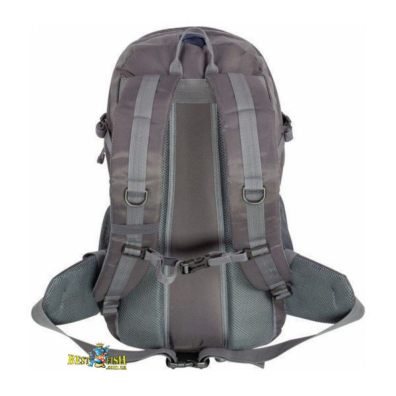 - Спинка рюкзака м'яка і вентильований. Центральний вентиляційний канал сформований м'якими валиками з пінополіуретану, обшитими сітчастої тканиною