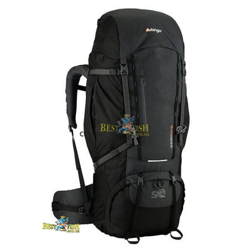 Рюкзак Vango Sherpa 70+10 Shadow Black. Туристический рюкзак Vango Sherpa 70+10 предлагает пользователю настроить максимально комфортную посадку с учетом анатомических особенностей человека для транспортировки снаряжения на длинные дистанции. Модель рекомендовано для использования Ассоциацией премии DofE.