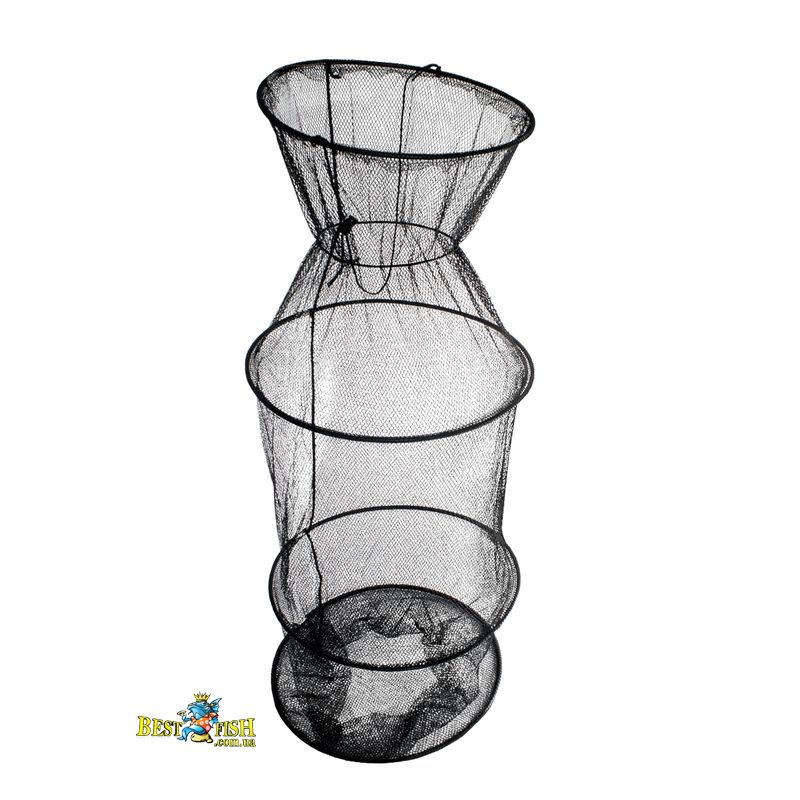 Садок має довжину 160см, ширину 40см, де можна зручно зберігати пару кілограм дрібної риби і кілька великий. Сітчастий матеріал посилений 6-ма кільцями, які полегшують рух риби всередині. Розмір осередку становить 6 мм.