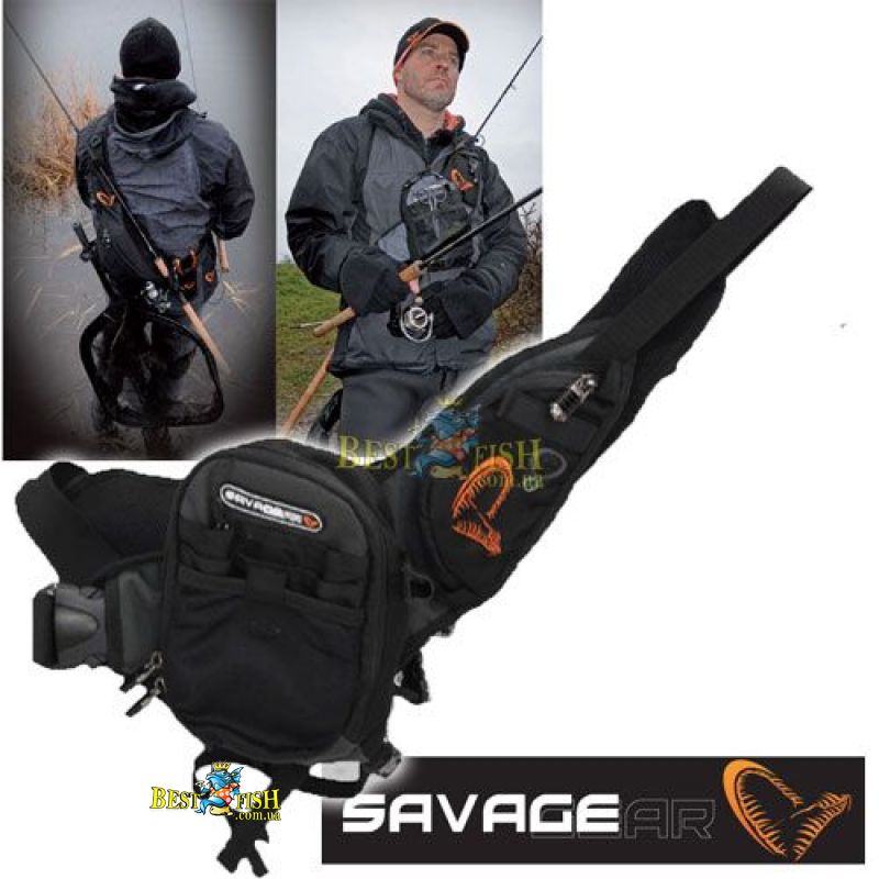 Сумка рыболовная Savage Gear ROADRUNNER GEAR BAG SG43832 необыкновенно удобная и практичная сумка, которая носится через плечо, при этом на груди располагается сумка, в которой можно разместить приманки и аксессуары, а за спиной с помощью специального держателя можно закрепить удилище. Незаменимый помощник при ходовой рыбалке, а также стритфишинге. Сумка оснащена ретривером для кусачек или другого рыболовного инструмента.
