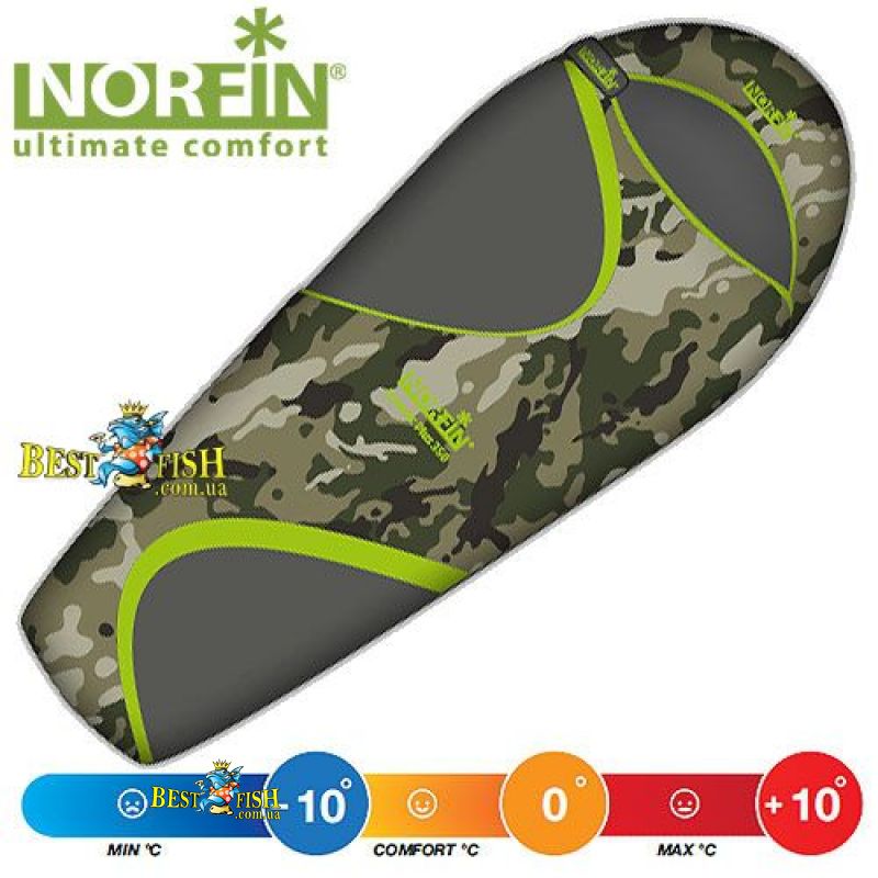 Спальний мішок-кокон Norfin SCANDIC PLUS 350 NC. Спальний мішок збільшеної ширини і довжини, розрахований на три сезони використання. Підійде для тих, хто не любить себе обмежувати навіть в похідних умовах, дозволяє надіти на себе додаткове білизна в разі сильного падіння температур. Виконано в варіантах з правого і лівого блискавкою, має можливість состёгівать два спальника в один.