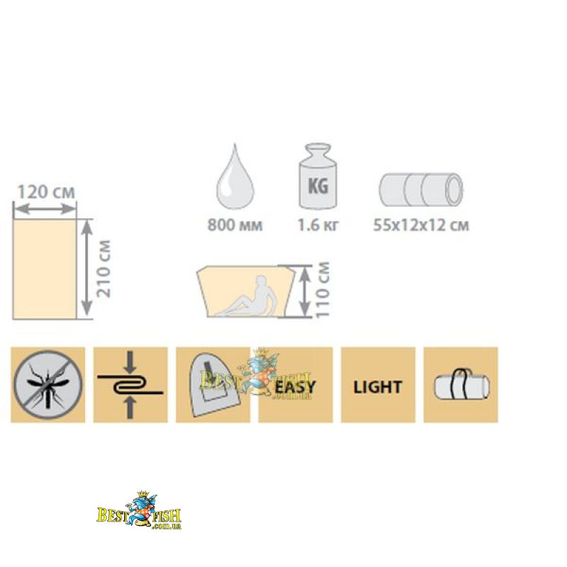 Материал наружной палатки \ влагостойкость Polyester 190T 70D PU / 800 мм.