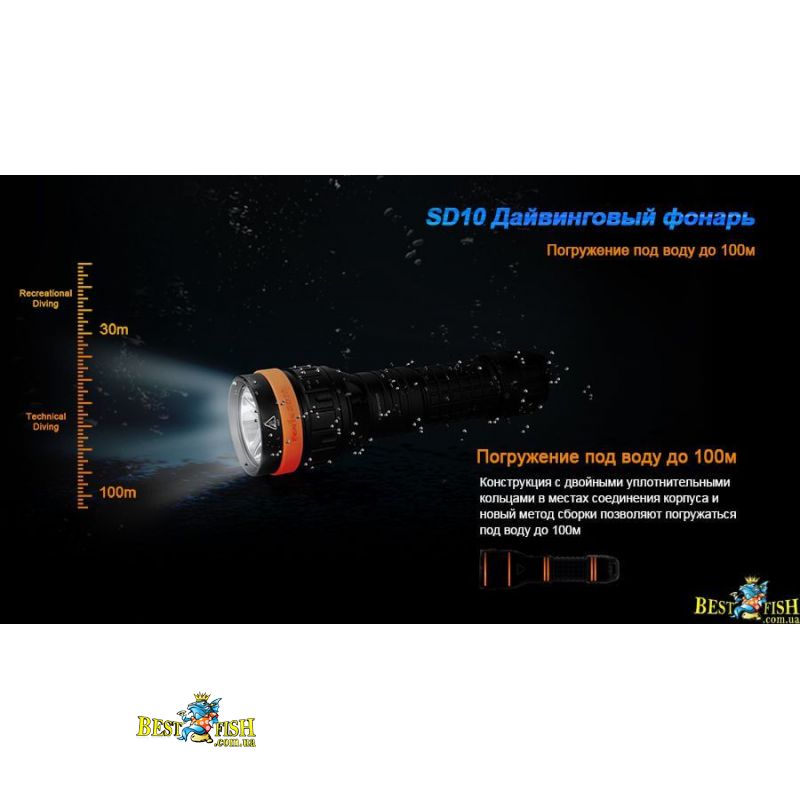 Специально для дайвинга на большой глубине компания Феникс выпустила модель фонаря Fenix SD10 Cree XM-L2 (T6).