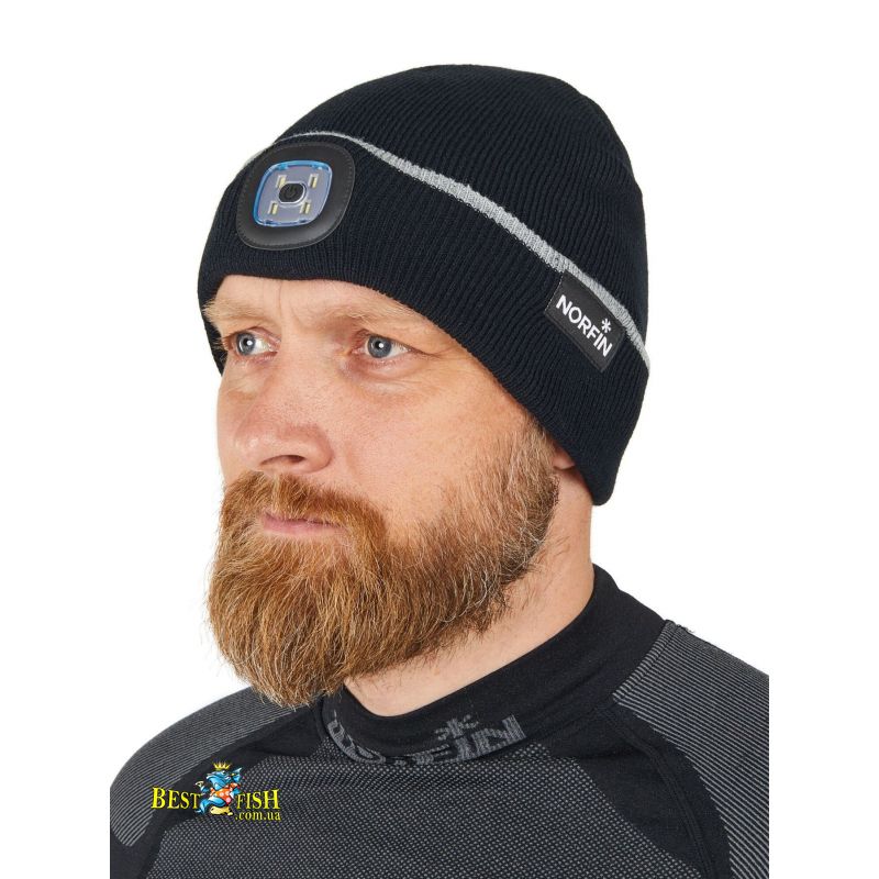 Шапка Norfin DISCOVERY LED чорна з ліхтариком L (302779-03L)