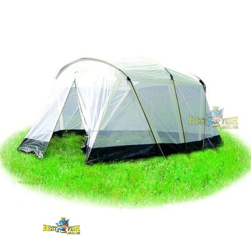 SHELTER - это палатка-шатёр, имеющая такие характеристики: конструкция туннельного типа; каркас на внешних дугах; входы: два - продублированы противомоскитной сеткой; фурнитура качественная.
