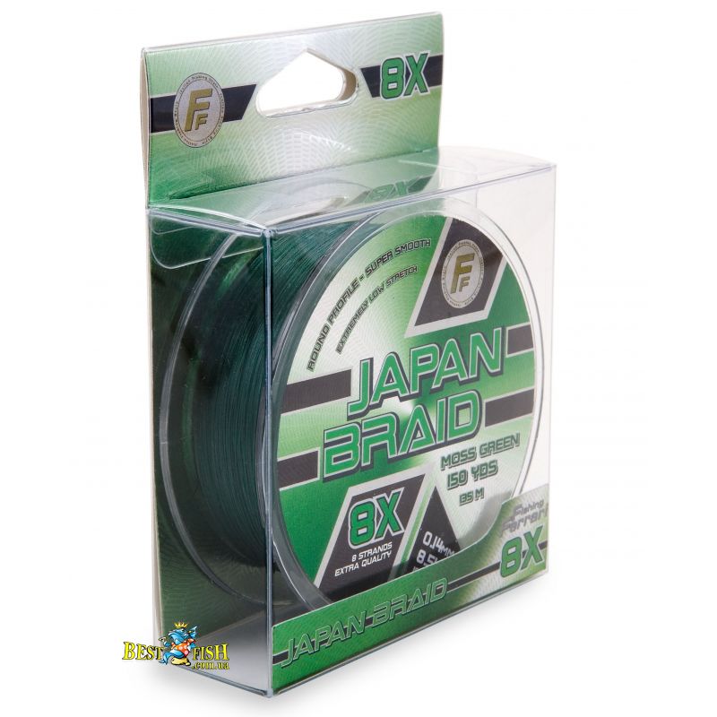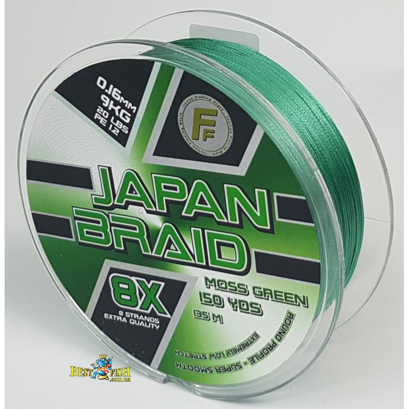 Lineaeffe FF Japan Braid 8X 135m 0.12mm / 7.50kg - дуже гладкий і м'який плетений шнур, виготовлений з японського PE матеріалу. Шнур випускається в 8 і 4 жильному варіанті. Має хорошу абразівоустойчівостью і відмінним вильотом.