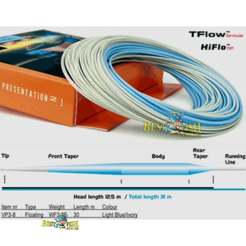 Шнур нахлыстовый PRESENTATION2 VISION VP5F. Общая форма шнура выглядит как ступенчатый треугольный профиль. Эта форма профиля шнура дает вам оптимальную возможность разворота шнура при забросе просто потому, что более тяжелая часть шнура постоянно задает вращение более легкой его передней части. В то же время этот шнур обеспечивает деликатную подачу, легкий и элегантный подъем и практически не тревожит поверхность водоема. Шнур Presentation2 также очень хорошо приспособлен для дальних забросов над головой и выполняемых при наличии препятствия сзади кольцевых забросов, когда вы не хотите выстреливать шнур. Название серии говорит само за себя. Шнуры Presentation2 и Target – выбор для рыболовов, которые предпочитают использовать стандартные мухи и легко управлять шнуром. В зависимости от длины головы они оптимальны для ловли на реках или небольших озерах. Они оба имеют наши новые концы с покрытием HiFlo™ и покрытие TFlow™ . Они двухцветные: белая running line и цветная голова.