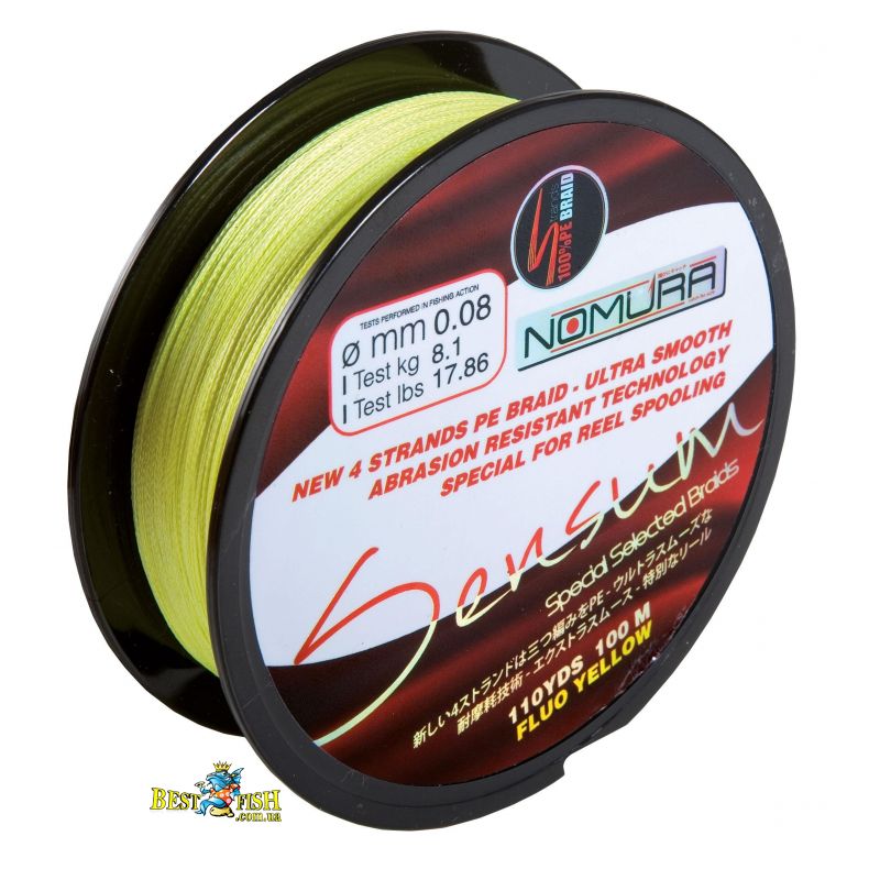 Шнур Nomura Sensum 100m (110yds) 0.14mm / 11.35kg fluo yellow (салатовий)