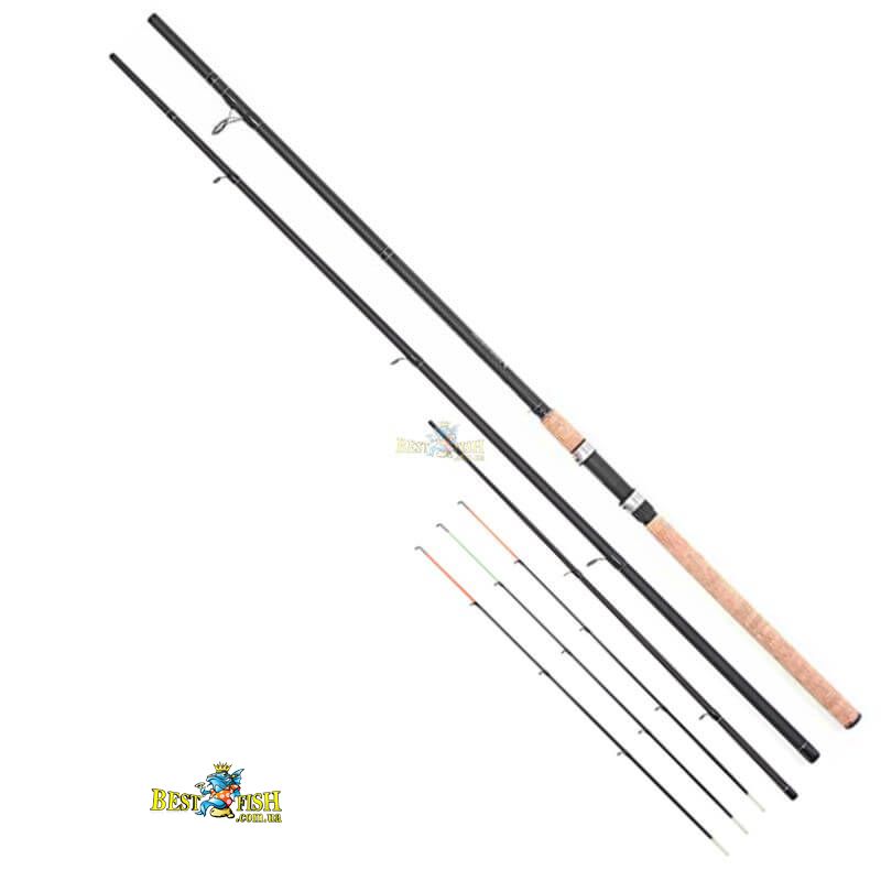Вудилище фідерне Salmo Sniper Feeder 90 3.60m надійне посилістое трехколенний з композиту з тестом до 90 г, середньо-швидкого ладу. Комплектуються трьома змінними чутливими вершинками різної твердості. Бланк вудлища, з кріпленням колін по типу OVER STEEK, укомплектований кільцями зі вставками sIc, рукояткою з проб- ковим покриттям і надійним гвинтовим катушкотримачем.