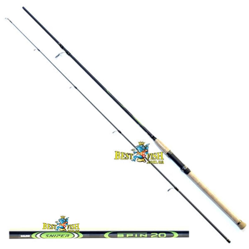 Вудилище спінінга Salmo Sniper SPIN 20 2.70 / ML універсальне середньо-швидкого ладу для лову на різні приманки, виготовлений з композиту. Бланк спінінга укомплектований полегшеними кільцями, на високих ніжках із вставками SIC і елегантною рукояткою з корковим покриттям і полегшеним буфером на торці. З'єднання колін спінінга по типу OVER STEEK. Всі спінінги мають один тест: 5-20 м