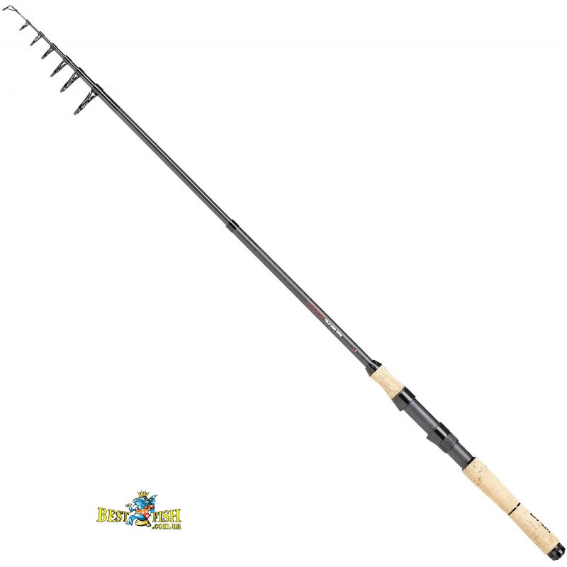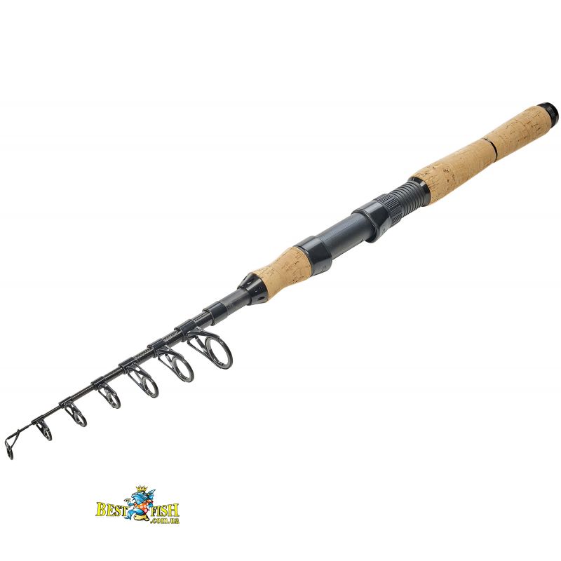 Мініатюрне телескопічне карбонове вудилище. Цей спінінг, довжиною всього 38см в складеному стані, поміститься в будь-який багаж і буде вашим вірним другом у відрядженні або на відпочинку. Висока якість виконання: пробкова рукоять, надійний катушкотримач, кільця зі вставками SiC для плетених шнурів.