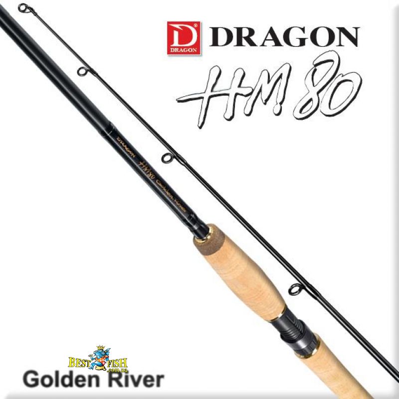 Спінінг Dragon HM80 Golden River - ультрашвидке вудилище для легких приманок. Незважаючи на типове для швидкого ладу згинання кінчика ідеально гасить вібрацію під час динамічного закидання. Вудилище для легких гум, маленьких воблерів і вертушок.