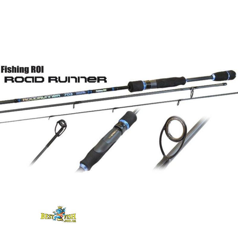 Спінінг Fishing ROI Roadrunner 2.10g 5-20g -трехчастние вудилища спінінгів Roadrunner, призначені головним чином для любителів подорожувати. Якісно-виконаний многочастнік штекерной конструкції ні в чому не поступається аналогічним Двоскладовий моделям, зберігши дію, надійність і кастингові властивості на високому рівні. Спінінги відмінно збалансовані, швидкого динамічного ладу з бланками з високомодульного карбону. Мають досить потужний комель, порожнисті вершинки «Tubular Tip», володіють достатньою жорсткістю, відмінною посилістостью і забезпечують досить впевнене і комфортне виведення хижої риби. Оснащені полегшеними кільцями з протівозахлестнимі рамками «KL Series» зі вставками «SiC» і зручними рознесеними ергономічними рукоятками з «EVA», а також надійними Катушкодержатель.