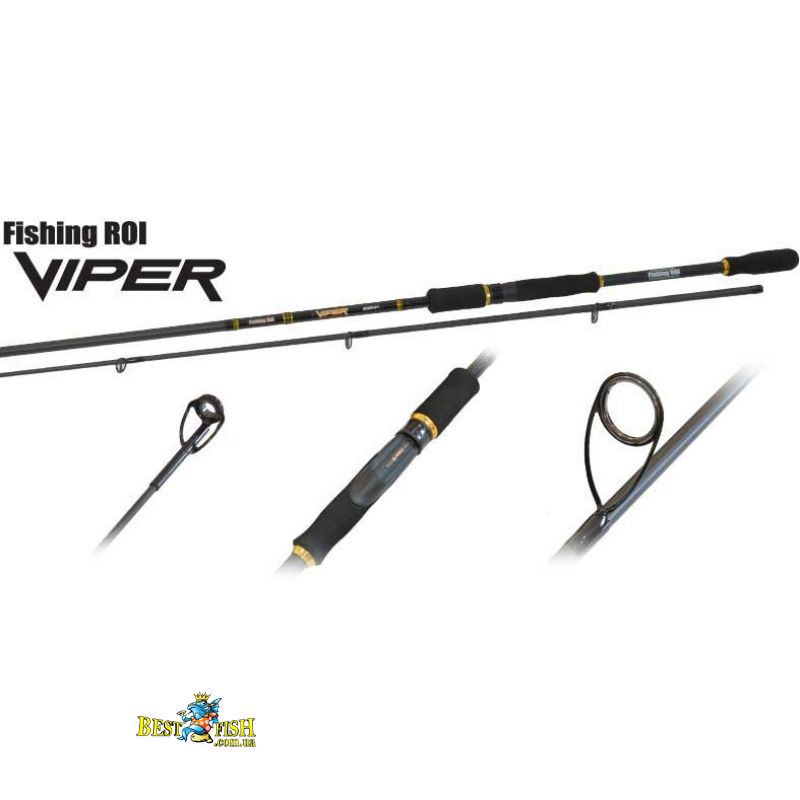Спінінг Fishing ROI Viper 2.40m 20-40g, відноситься до серії вудилищ спінінгів представлених на ринку 7ю моделями довжиною від 1.85 до 2.7 м в найбільш затребуваних тестових діапазонах (по принадах). Це унікальна група моделей, що не перевищує за вартістю бюджетні аналоги іменитих брендів, і при цьому володіє комплексом технічних характеристик, притаманних вудилищам більш високої цінової категорії. Спінінги "Viper" мають бланки з високомодульного карбону, відмінно збалансовані, мають швидким ладом, відмінною посилістостью і пристойним запасом потужності. У той же час, їм притаманний малу вагу, вони оснащені полегшеними протівозахлестнимі кільцями «KL Series» зі вставками «SiC» і зручними рознесеними ергономічними рукоятками з «EVA» .Все бланки серії оснащені вклеєною вершинкой «Solid Tip», що дозволяє рибалці візуально визначати клювання риби, але, незважаючи на це, вони досить інформативні. Таким чином, рибалка має можливість відчути клювання ще й тактильно. Вся інформація чудово передається по шнуру та бланку «в руку» рибалки. Цьому також сприяє досить зручний короткий форгріп катушкодержателя, що дозволяє при лові утримувати палець на бланку вудилища.