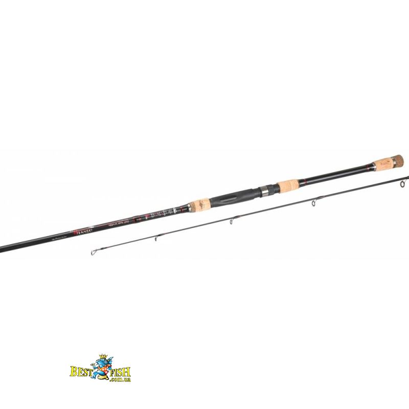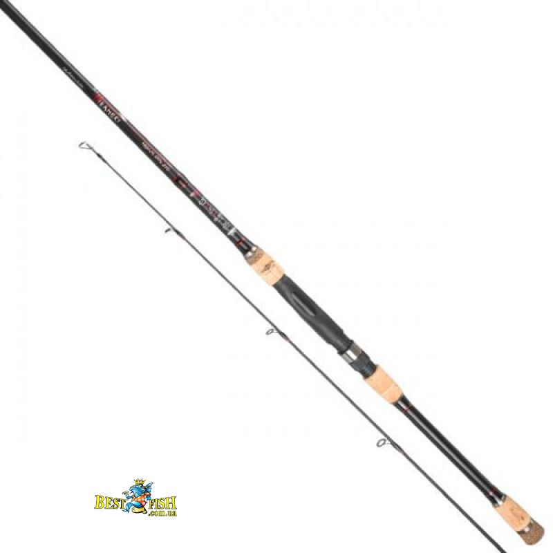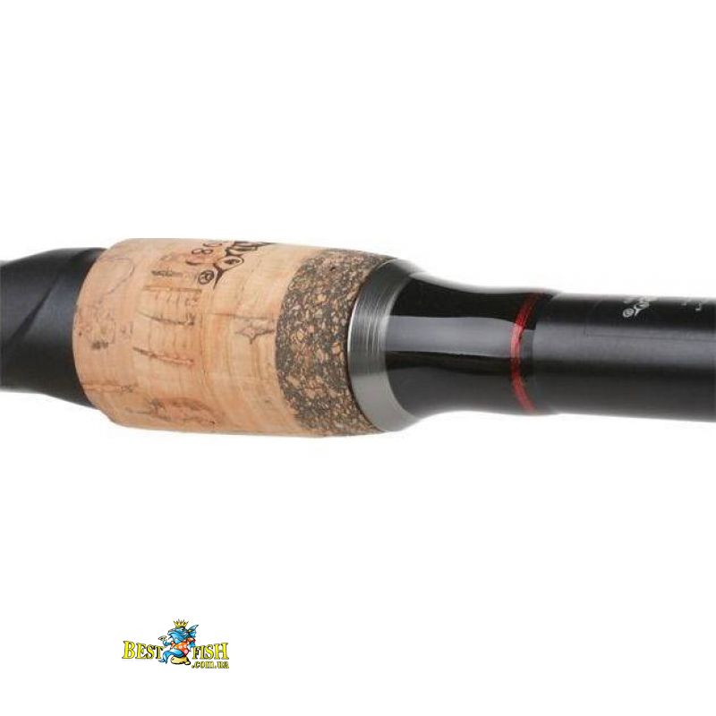 Універсальний спінінг дозволяє ловити на всі види штучних приманок. Потужний і надійний бланк вудилища виконаний з карбону, має швидкий лад і солідний запас потужності. На вудилище встановлені кільця зі вставками SiC. Рукоятка розділена, виконана з пробки. На ній встановлено катушкотримач скелетного типу з задньої гайкою.