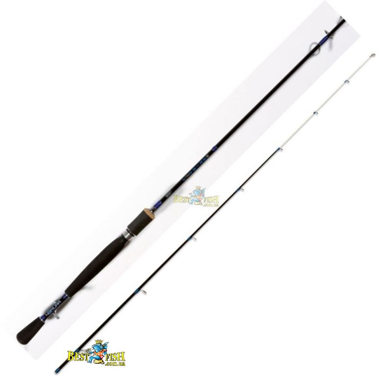 Якісне бюджетне вудилище універсальної спрямованості. Бланк вудлища виготовлений з 24Т карбону, високоякісна фурнітура, рукоять з EVA і агресивний дизайн. Синє вудилище - найпотужніше вудилище з серії з тестом до 28гр має великий запас потужності і призначене для лову великої риби, такої як щука або бас.