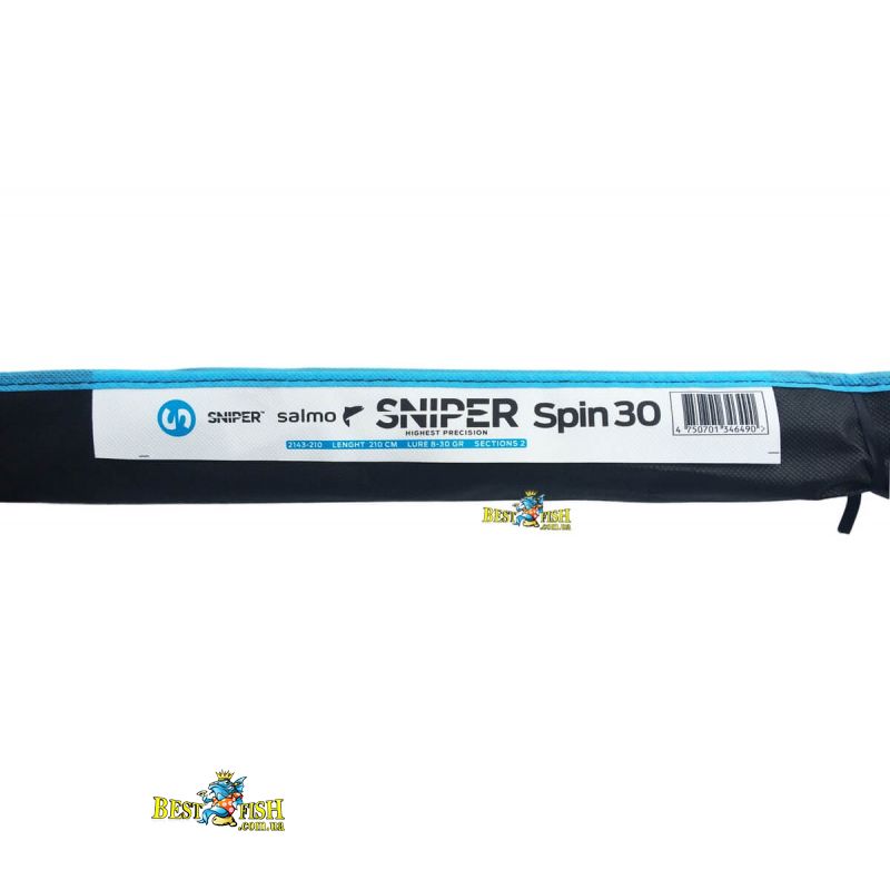 Спінінг Salmo Sniper Spin 8 210 універсальний середнього ладу з графіту. Оптимальний для лову на найрізноманітніші приманки: блешні, м'які приманки і воблери (крім ривкових). Оснащений ергономічною рознесеною руків'ям з матеріалу EVA з верхньої гайкою кріплення, інтегрованої в форгріп, що виключає контакт долоні з пластикової різьбленням. Яскравий привабливий дизайн. У комплекті щільний тканинний чохол для транспортування. Надійний, функціональний спінінг за доступну ціну.