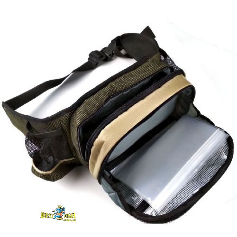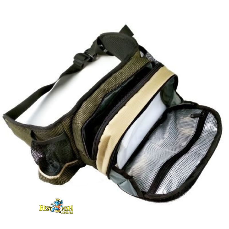 Чудова пропозиція для рибалок віддають перевагу берегову риболовлю "на легке". Розвантажувальний пояс може бути відмінним доповненням до жилету або рюкзаку - в цьому випадку він служить в якості зручного сховища для найнеобхідніших аксесуарів. Оснащений широким регульованим ременем, 2 сітчастими кишенями для напоїв, 3 великими кишенями на блискавці. Середній кишеню оснащений тканинними обмежувачами, завдяки яким стулка кишені відкидається але лише на 45 градусів. Так само в даному кишені розташований блок з 5 zip-пакетів (12,5 х 18,5 см), які фіксуються в кишені за допомогою липучки, і внутрішню кишеню на блискавці. У другому великому кишені на блискавці, який ближче до рибалки, розташовані 3 внутрішніх кишені на гумках для різних дрібниць. Всередині зовнішніх стінок розміщений спінений матеріал, що захищає вміст. Частина, яка прилягає до тіла виконана з м'якого матеріалу, укріпленого сіткою, що гарантує комфорт і хорошу вентиляцію.