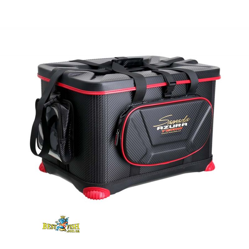 Також сумка має водонепроникністю. Тому вміст відсіків буде перебувати в сухості незалежно від погодних умов. Зовні сумка покрита чорної, карбонової плівкою з елегантними червоними вставками. Такий дизайн підкреслює динаміку і технологічну досконалість моделі. Сумка оснащена двома ручками для перенесення, а також регульованим ремнем через плече. Модель Azura Sawada знайде своє застосування, як в берегової, так і в човнової риболовлі.