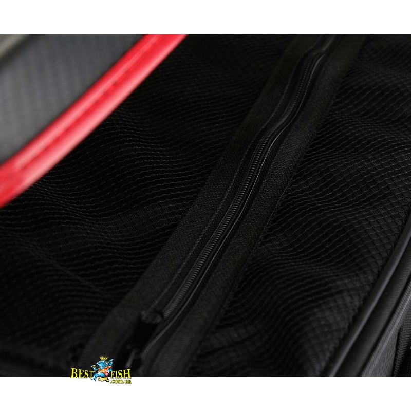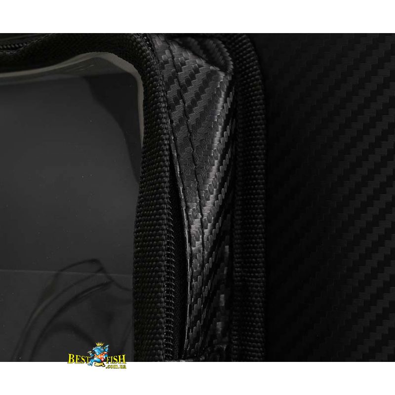 В якості додаткового елементу збоку на корпусі є невеликий, прозора кишеня на блискавки. Він призначений для різної дріб'язку (повідків, гачків, волосіні), яка завжди буде знаходитися на видному місці. Спереду розташований напівтвердий, але більш місткий кишеню на блискавки.