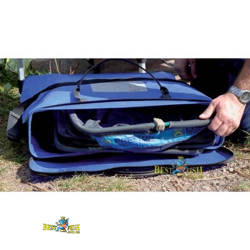 EVA Net Bag Blue идеально подходит для перевозки садков, головы подсаки. Изготовлен из водостойкого EVA материала с полностью сварными швами. Идеально подходит для транспортировки мокрых садков, подсак и удерживает воду предотвращая вытекание воды. Застежка-молния, ручки для переноски и регулируемый плечевой ремень.