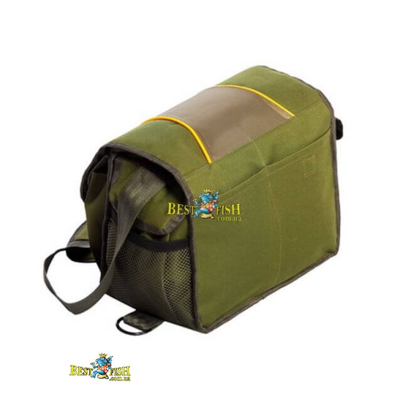 - Состоит из 2-х передних накладных карманов размером 160 х 180 х 40мм, и 2-х боковых карманов размером 180 х200 х 50мм, карман сзади на липучке, 2 внутренних кармана для документов или телефона. Именно наличие накладных сеточных карманов так любят рыбаки за возможность быстрого доступа к приманкам и аксессуарам. 2 полукольца сбоку сумки для навески кукана или полотенца
