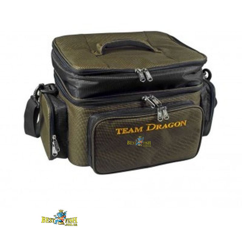 Сумка спінінгіста Dragon з термоотсеком, 3 коробки, протектор - з дуже міцного водонепроникного нейлону типу Oxford 2006. Продумана конструкція, велика функціональність, матеріали вищої якості, додаткові, зміцнення і турбота про кожну деталь оздоблення роблять, що це продукти найвищої якості, які будуть служити рибалці багато років. Всі сумки і чохли Team Dragon оснащені міцними застібками-блискавками японської фірми YKK.