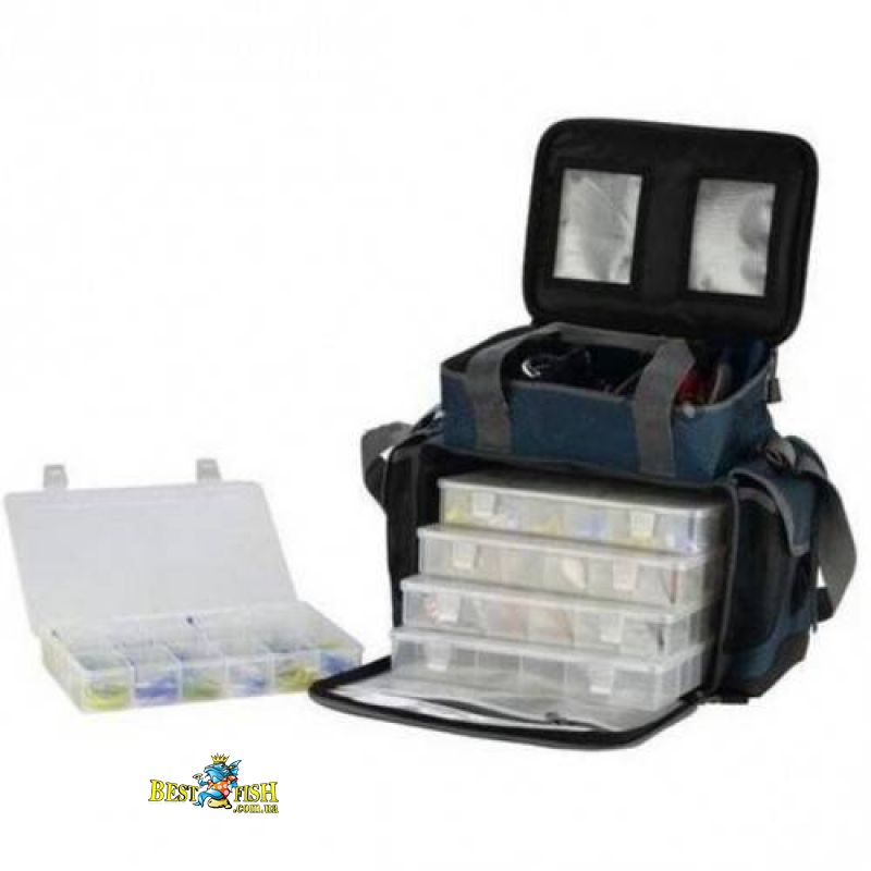 Обеспечьте себе комфорт премиум класса вместе с сумкой Voyager. Сумка состоит из четырех независимых между собой отделений, два из которых закрываются молнией, два – карабинами. Первое отделение содержит 5 коробок на 18 отделений каждая, на внутренней стороне крышки – карман на молнии. Боковые карманы также оснащены пластиковыми коробками с 11 отсеками каждая. Сумка имеет как плечевой ремень, так и удобную ручку.