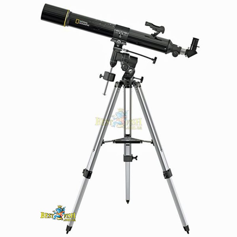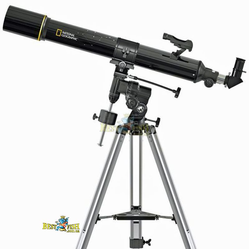 Объектив телескопа National Geographic Refractor 90/900 EQ3 представляет собой рефрактор ахромат с относительным отверстием 1/10, благодаря чему данный телескоп может обеспечить достаточно большое увеличение в паре с качественными длиннофокусными окулярами. Линза объектива имеет многослойное просветляющее покрытие для увеличения светопропускаемости и поднятия контрастности. Объектив снабжен блендой для защиты от боковых засветок и выпадения росы.