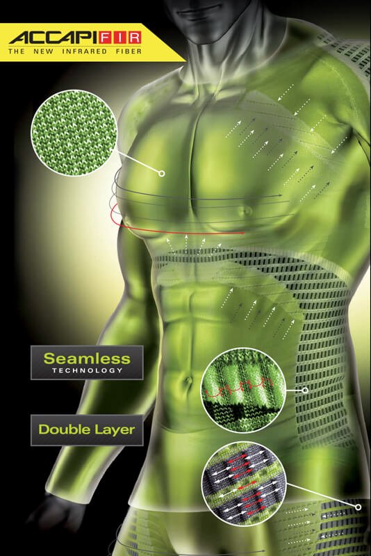 Великолепно отводит влагу, сохраняет оптимальныи? микроклимат, мягко и эффективно поддерживает мышцы и гасит вибрации. Благодаря технологии адаптивнои? компрессии и волокнам FIR, белье Health Power повышает эффективность работы мышц, улучшает кровообращение, стимулирует выведение токсинов и продуктов распада, снижает интенсив- ность воспалении? и уменьшает боль в мышцах.