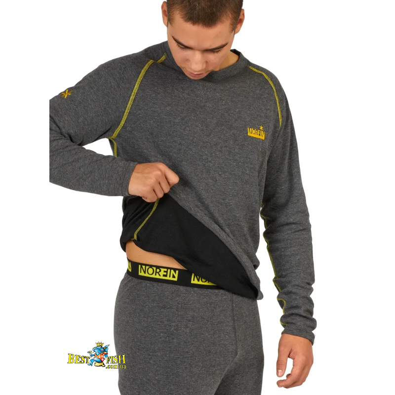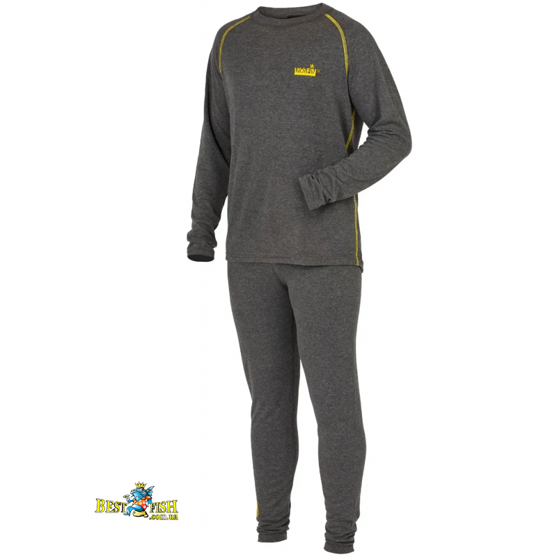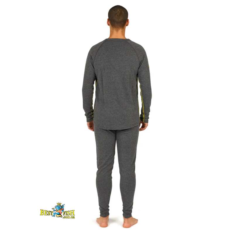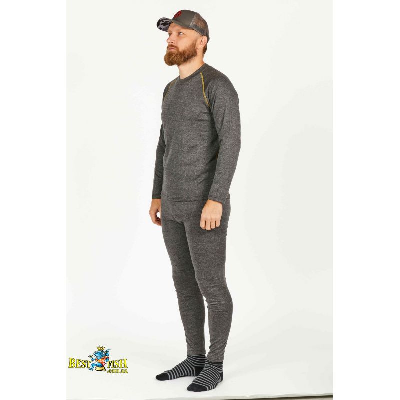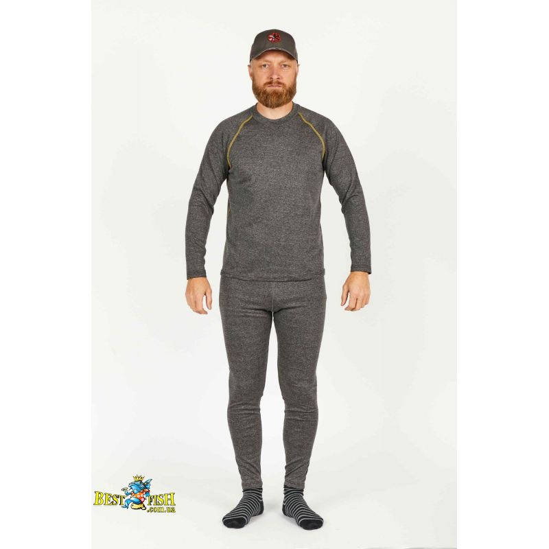 Чоловічий двошаровий термокомплект для холодної та прохолодної погоди. Внутрішній шар із мікрополіестеру відводить вологу від тіла, а зовнішній бавовняний шар забезпечує комфорт під час щоденного носіння. Плоскі шви, приталений крій і широкий еластичний пояс роблять комплект зручним для риболовлі, полювання та подорожей.