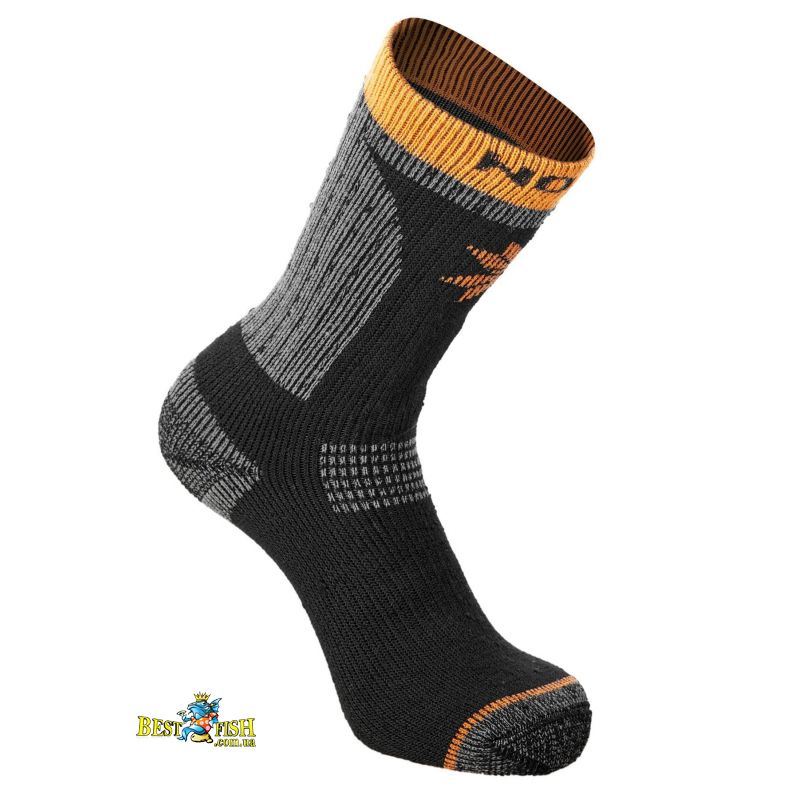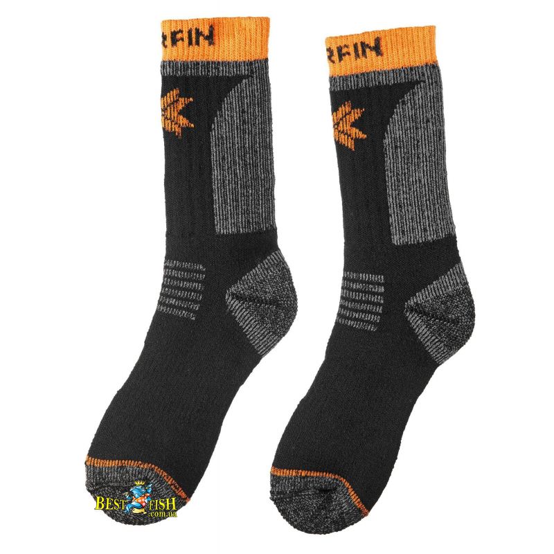Теплі термошкарпетки з вовною мериноса для дуже холодної погоди. Поєднання вовни, акрилу та нейлону допомагає зберігати тепло й забезпечує практичність у щоденному використанні. Посилені зони та підтримка склепіння стопи підвищують комфорт під час риболовлі, полювання та зимових прогулянок.