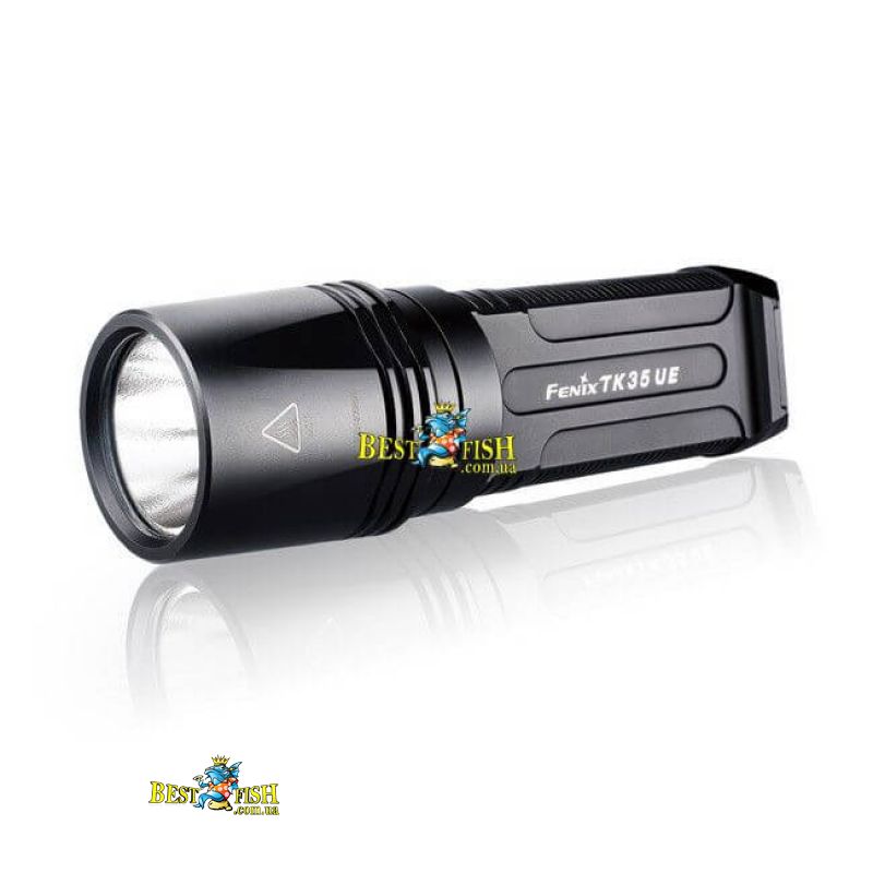 Батарейки в фонаре располагаются один параллельно другому, поэтому форма корпуса немного плоская. Благодаря такой особенности, его удобно удерживать. Материалом же для корпуса производители выбрали надежный сплав алюминия, который также применяется в авиации. Таким образом, фонарь Fenix TK35 полностью защищен от случайного повреждения из-за удара, а также — от воды и пыли.