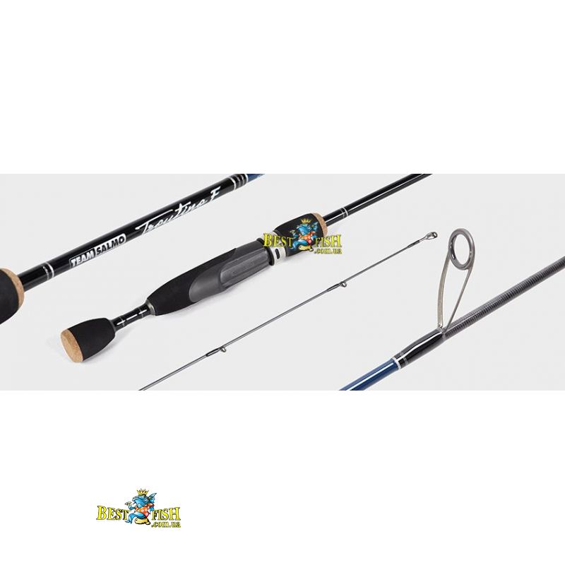 Вудилище спінінга TEAM SALMO TROUTINO F 702M спеціально розроблялися для любителів лову форелі. Вони стають продовженням руки рибалки, дозволяють відчути найменшу клювання, а бланк цього спінінга буквально в'яже рибу, відпрацьовуючи кожен її ривок тим самим дозволяючи уникнути обривів навіть при використанні тонких лісок. На спінінгах використовується рознесена рукоятка з матеріалу EVA з катушкотримачем FUJI, а також кільця KIGAN з цирконієвими вставками серії ZERO TANGLE GUIDES, що перешкоджають їх захлёсту тонкими плетеними шнурами. Для виготовлення бланка використаний високомодульний графіт 40T HI-modulus Carbon.