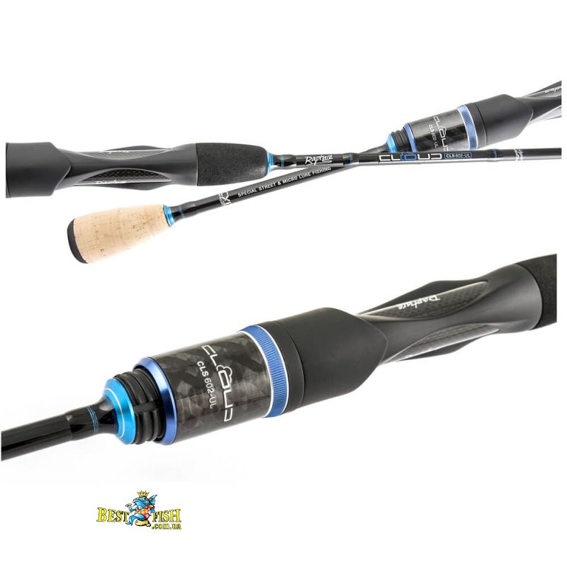 Кільця SiC з довгими ніжками, з K-профілем. Спеціальний набір кілець, призначений для закидання надлегких приманок з дуже тонкими плетеними лініями. Зручність, універсальність, витонченість в деталях для серії, призначеної для молодої аудиторії, яка практикує різні техніки лову спінінга, щоб коли-небудь ніколи не припиняти отримувати задоволення від риболовлі. Cloud дає можливість використовувати широкий спектр приманок - від силіконових на джиг-голівці, до блешень і воблерів вагою до 7-8 грам: ми знаходимося на території Light Game, що дуже цікаво в світі street fishing і при більш традиційної риболовлі. Чудова ручка, розділена на EVA і пробку, з анатомічним катушкотримачем, розташованим у відносно високому положенні, щоб забезпечити достатню плече для довгих кидків. Бренд Rapture створений італійською компанією Trabucco для розвитку вудилища напрямки.