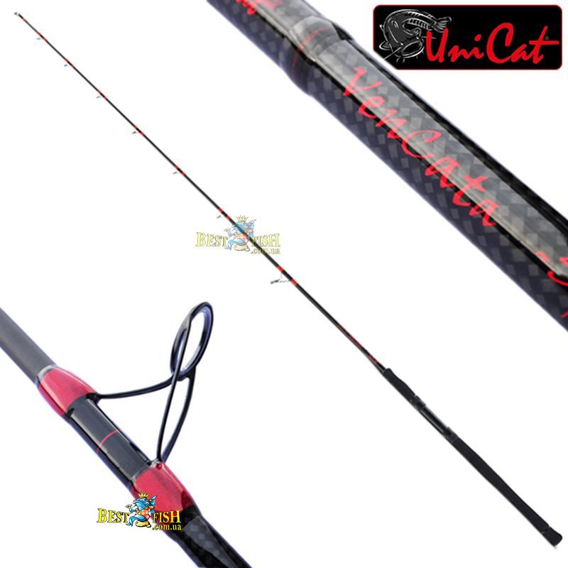 Вудилище Uni Cat Vencata V-Shot 1,73m up to 210 g дуже потужне може підняти річкового монстра більше 100 кг. Ручка регулюється для балансування. Збільшене перше кільце.