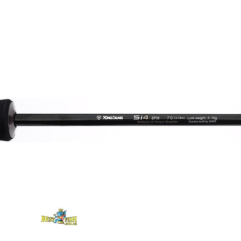 Двосекційний спінінг Yong Sung Si 4 Spin має великий запас міцності, позиціонується як універсальне вудлище для динамічної риболовлі. Бланк виготовляється з Multiplex Hi Torque Graphite і орієнтований на полювання за великий, трофейної рибою, із застосуванням уловистих приманок. Вудилище спінінга Yong Sung Si 4 Spin чудово збалансовано, співвідношення ваги, довжини рукояті і довжини бланка ретельно підібраний, що не викличе втоми після цілого дня вправ. У комплектації даної моделі використані кільця зі вставками sic в оправі зі сталі, катушкотримач анатомічної форми, EVA ергономічна рукоять. Строй - швидкий, вудилище гнеться у верхній третині хлиста. У вітряну погоду спінінг з швидким ладом значно виграє.