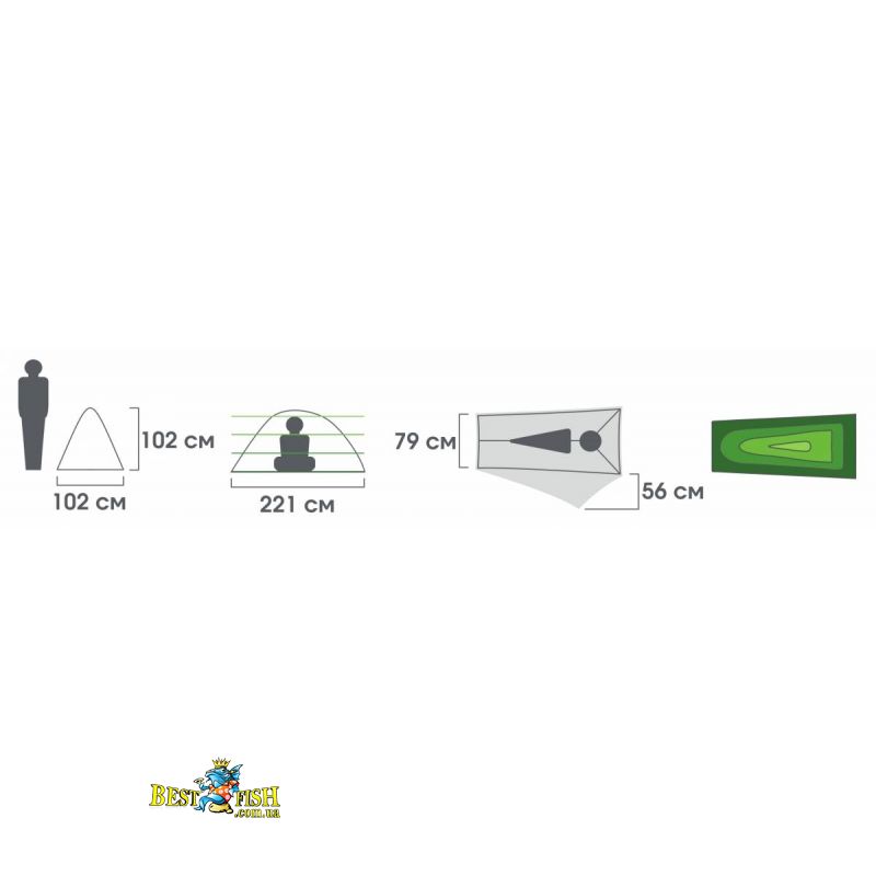 Материал палатки: Нейлон 15D Ripstop, сетка No-See-Um Mesh.