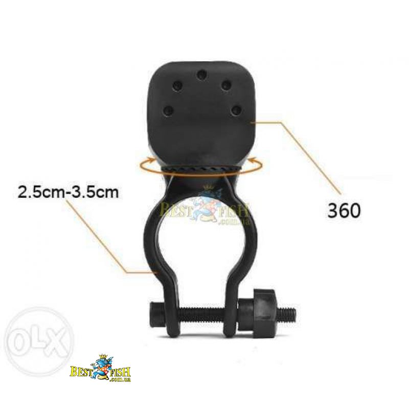 Самое популярное и удачное поворотное крепление фонаря на велосипед. Поворачивается вокруг своей оси на 360 градусов. Сделан из надежного пластика и тугой резины. Держатель фонарика подходит для вело руля и гладкоствольного оружия.