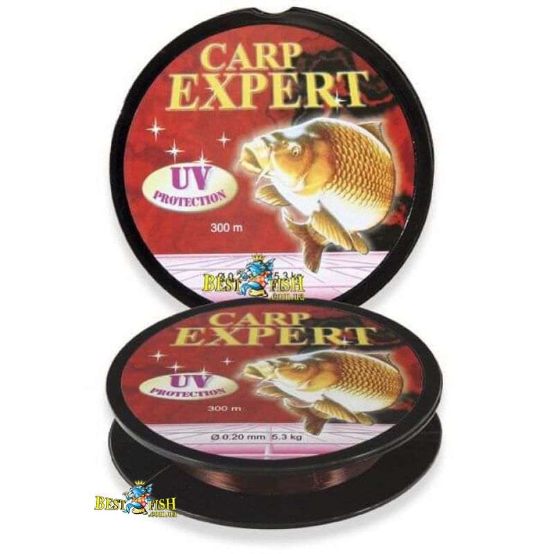 Волосінь Carp Expert UV 0,25mm 150m. Розроблено для лову коропа, відмінно підходить для риболовлі в важкодоступних місцях. Колір коричневий з пурпуровим відтінком. Завдяки здатності поглинати і відбивати світло, майже непомітна у воді. Волосінь тоне і має мінімальну розтягуванням. Має спеціальне покриття що забезпечує захист від дії сонячних променів і корозії, тим самим значно збільшується термін ефективної служби монолески. Для всіх лісок серії «Короп Експерт» характерні відсутність «пам'яті», міцність на вузлах, зносостійкість.