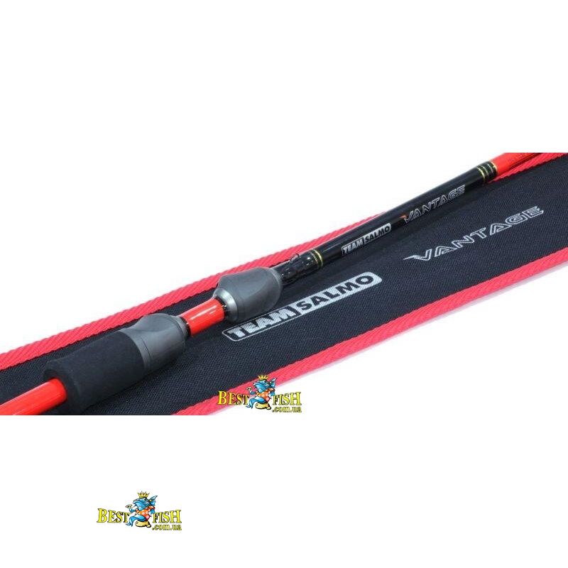 Вудилище спінінга TEAM SALMO VANTAGE 18 7.62 - найширша з нових лінійок спінінгів Team Salmo, в якій представлені вудилища, основне призначення яких - ривковая проводка приманок. Жорсткий бланк і спеціально підібрана довжина забезпечать правильну анімацію приманок, будь то воблер, блешня, що коливається або силіконова приманка. Ці вудлища відмінно підійдуть і для джиговой лову з човна. Спінінги вийшли дуже чутливими, а кільця KIGAN з цирконієвими вставками серії ZERO TANGLE GUIDES дозволять віртуозно виконати саму хитромудру твічінговую проводку, не боячись несподіваних перехлеста навіть при використанні тонких плетених шнурів. Спінінги оснащені зручною рознесеною ручкою з матеріалу EVA з катушкотримачем FUJI. Для виготовлення бланка використаний високомодульний графіт 40T HI-modulus Carbon.