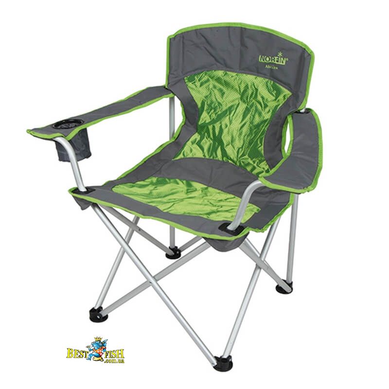 Крісло складне Norfin VERDAL NF. Крісло складне з алюмінієвим каркасом. М'яка спинка, тканинні підлокітники з підсклянником. При невеликій вазі і компактності витримує велике навантаження.