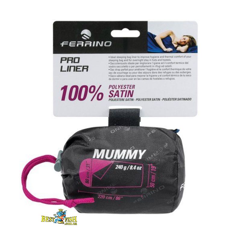 Вкладиш Ferrino Liner Pro Mummy Blue - ідеальне рішення для підтримки особистої гігієни при короткочасних ночівлях в хостелах, поїздах, або на природі в спальному мішку. При використанні вкладиша зі спальним мішком досягається більший тепловий комфорт, але головне те, що немає необхідності стирати спальний мішок, який, як правило, вимагає більш делікатного догляду, досить тільки випрати вкладиш. Матеріал вкладиша з сатиновим переплетенням є комфортним і приємним для тіла, відмінно провітрюється і відводить вологу. Упакований в чохол, вкладиш не займе багато місця в рюкзаку, а завдяки петлі з текстильною застібкою Velcro, також може бути пристебнутий на рюкзак зовні.